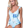 BLUE FLORAL RUFFLE TRIM ONE PIECE SWIMWEAR