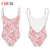 Women's Swimwear CH Letter Pink Triangle One-piece Swimsuit